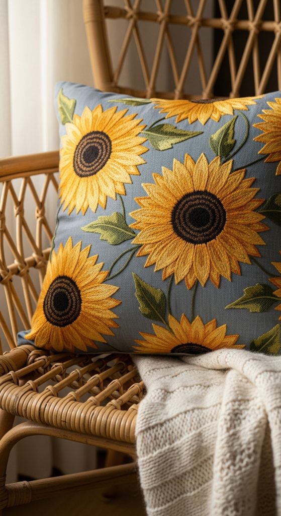 Personalize plain pillow covers with embroidery hoops and thread. Stitch floral patterns, quotes, or abstract designs using a backstitch or satin stitch. Swap covers seasonally to refresh your living room or bedroom without buying new pillows.
