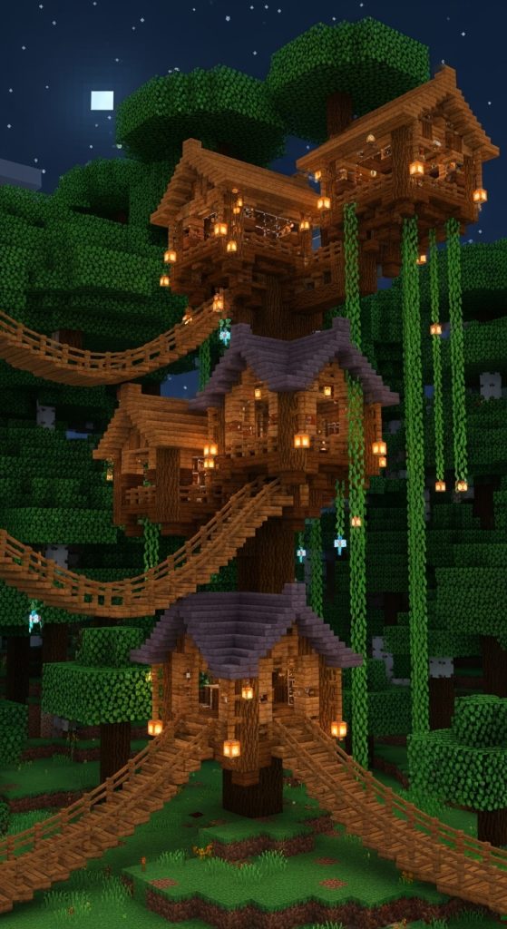 - Combine tiny mushroom houses, log cabins, and vine-covered towers.